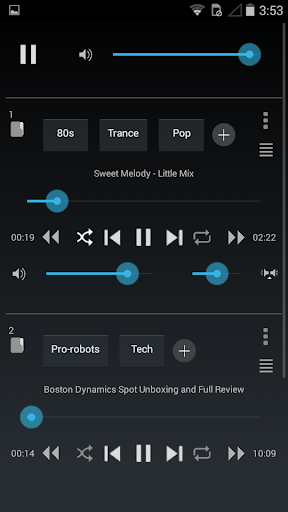 Instead of using multiple music player apps. You can play your files with multi audio player.