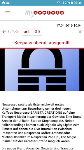 My Gewista App ist die Kommunikations- und Interaktionsplattform für alle Mitarbeiterinnen und Mitarbeiter der Gewista Werbegesellschaft mbH in Wien und informiert über alle internen Themen des Out of Home-Unternehmens.