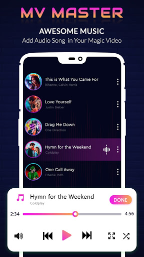 => MV video status maker application is the easiest way to create, edit and share amazing videos. here you can find the best different types of HD video templates to make amazing video status. you can mix up your different favorite photos for creating a beautiful photo video using this app. what makes this app is different than other is we provide output video without losing its original quality and another advantage of this app is to make beautiful, amazing, and free video statuses with no watermark and free of cost. MV Master - Video Status Maker brings new features to help users create amazing videos with photos or videos for more fun!