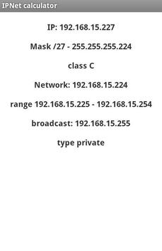 With IP Net Calculator you can have the more relevant data about an IP with its Mask. You only have to enter the IP, choose the mask, and get data as class, type, network, range and broadcast.