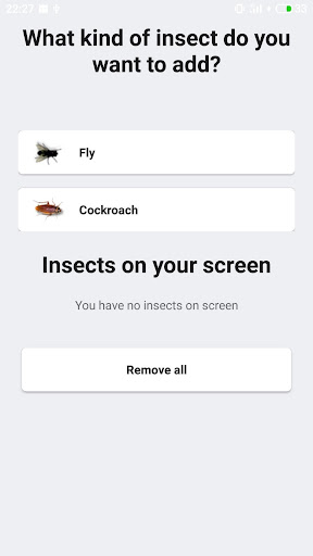 Application also has flies manager also cockroaches manager which shows animals count you have added to your screen.