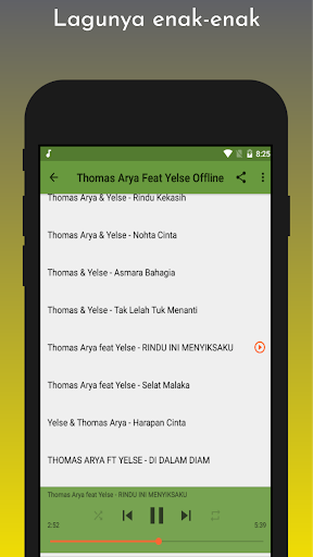 このアプリケーションには多くのSongs Thomas Arya feat Yelseがおいしいです。このアプリケーションは非常に軽いので、インターネットクォータを排出せず、いつでもどこでもこの曲に耳を傾けることができます。