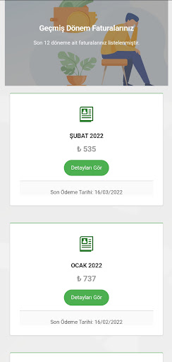 Geçmiş dönemlere ait faturalarınızın detaylarını görüntüleyebilirsiniz.
