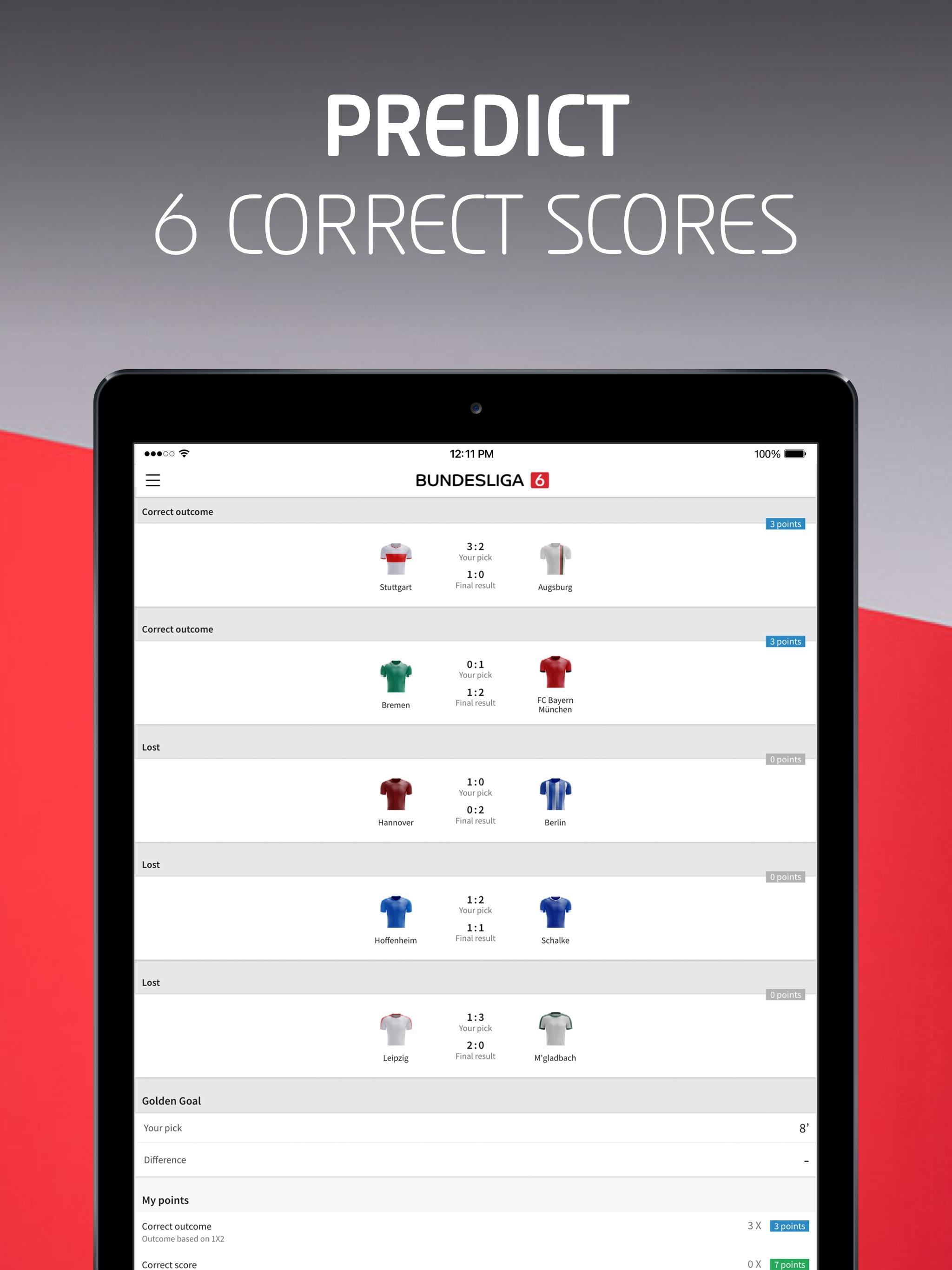 Bundesliga6 is the new and innovative prediction game & prize competition adapted for the German Bundesliga. Predicting each Bundesliga match is now more exciting. Place your bets for the Bundesliga Matches and compare your predictions with our expert and German football legend Oliver Kahn.