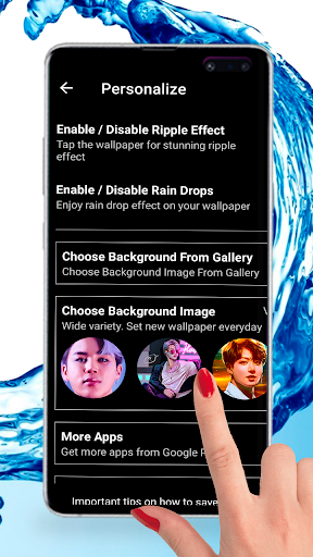 BTS 4K Live Wallpapers with Water Ripple Effect provides all pics of hot bts band nowadays. This app collects: