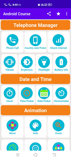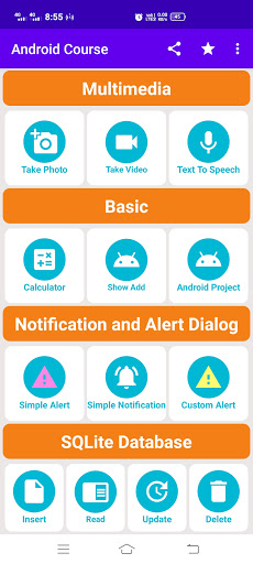 Developer can find the java and xml code from this android course app.You can copy all useful code and paste on your android project .