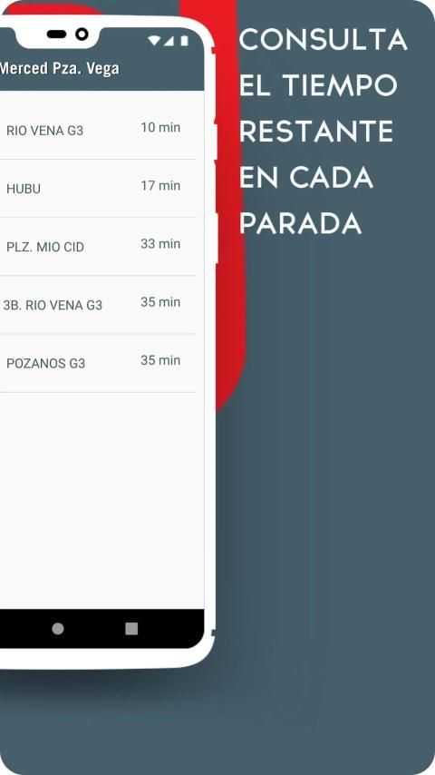 ▶ Consulta el tiempo restante hasta que el autobús llegue a cualquier parada.