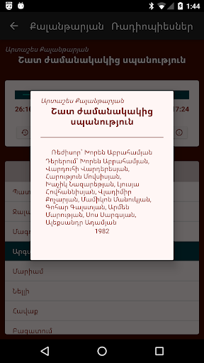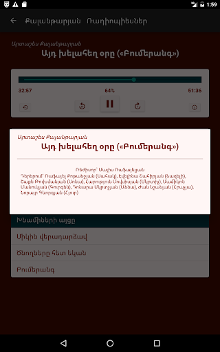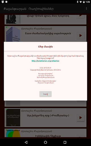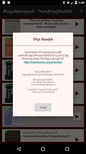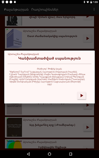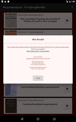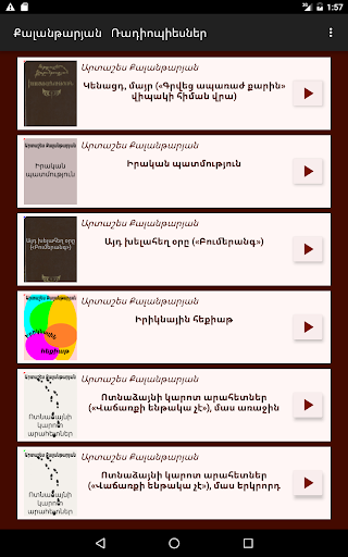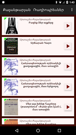 Artashes Kalantarian is a renown Armenian writer. Using this application you can listen to 13 of his plays produced by the Armenian radio