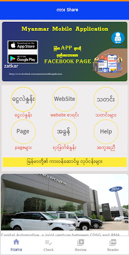 MM ကား Share Mobile Application သည် မော်တော်ယာဉ်နှင့် သက်ဆိုင်သော ဝန်ဆောင်မှု ကို ပေးပါသည်။