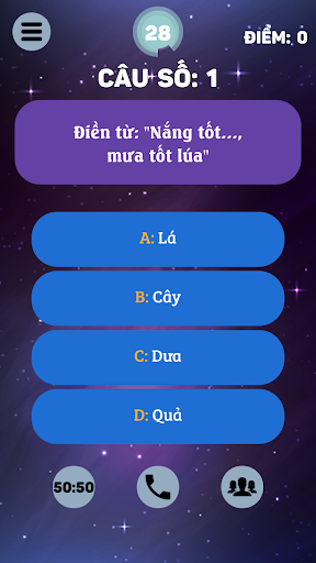 Hãy thách thức chính mình hoặc với bạn bè với 15 câu hỏi hóc búa cùng 4 lựa chọn câu trả lời, 4 sự trợ giúp của chương trình và phần thưởng lớn trị giá 150 triệu đồng.