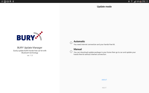 In automatic mode, the application connects to the hands-free kit and checks the update version via connecting to the Internet. If a newer version of the software is available, the
