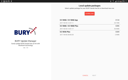 the CC and AD line of hands-free kits. Thanks to Bluetooth connectivity, the application will easily update the software on the following devices: CC9068, CC9060, CC9056 Plus, AD9060.