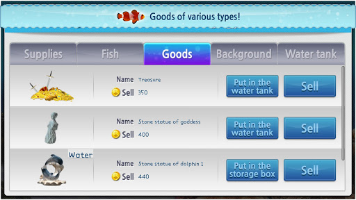 Beautifully decorate your fish tank with items and install a fishing net in the special area to catch fish.