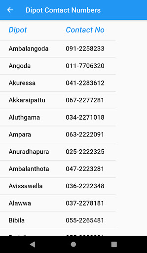 Telephone numbers of SLTB depots are included in this App.