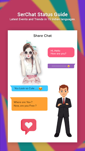 SerChat Status Guide is a Guide that walks you through ShareChat New app features, lets you understand how to use the app as a Pro. You can share videos, jokes, GIFs, audio songs and funny images from India in Indian languages like Hindi, Telugu, Marathi, Gujarati, Punjabi and Malayalam.