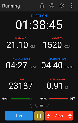 - Laps, manual and auto-pauses