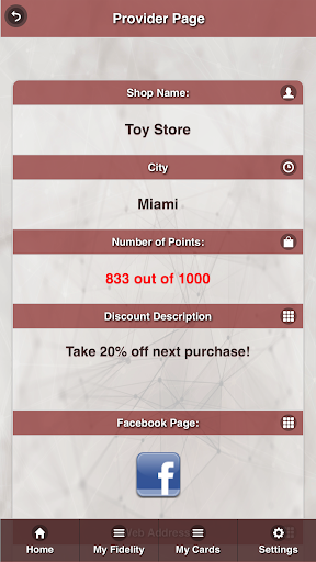 Fidelity Card - Client an easy way to achieve points/coupons and to get useful news from all sorts of suppliers.