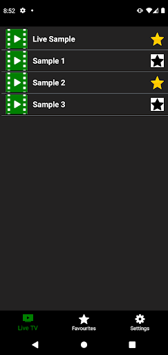 The user can add the favourite content to the “Favourites” page by pressing the "star" button next to each video.
