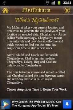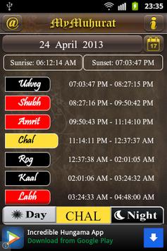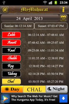 My Muhurat calculates the day choghadia hours by dividing time from sunrise to sunset at the users location into 8 equal parts to come to an accurate calculation of the Choghadiya.