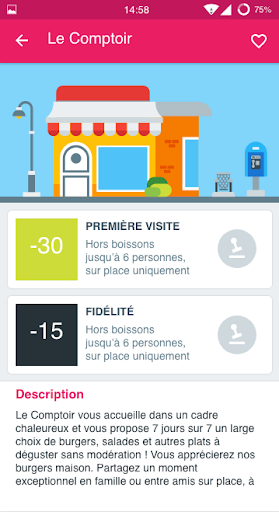 - Enregistrez vos commerçants préférés dans vos favoris