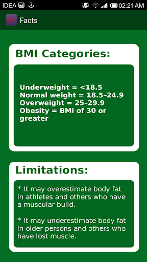 Body Mass Index Calculator is No.1 App to measure your fitness. Daily usage of this App motivates you for further fitness exercises. On the basis of your weight and height it measures your Body Mass Index.
