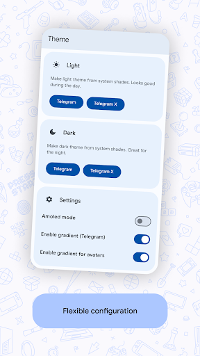 With this application, you can create themes for Telegram and TelegramX clients. It uses Android Material3 Color (as in Play Market)