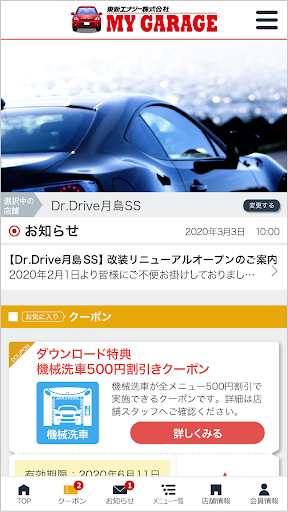 "내 차고"앱에서 앱으로 세차 및 코팅과 같은 예약을 쉽게 예약하고 자동차를 관리 할 수있을뿐만 아니라 등록 된 매장에서 사용할 수있는 할인 된 쿠폰 및 다양한 메뉴에 대한 할인 정보를 얻을 수 있습니다. 배달 중입니다.