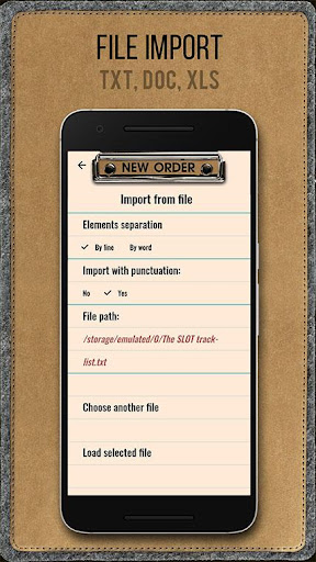 Created lists are stored in the database of your phone and are automatically saved upon any change. Also, the application supports working with files. You can save the desired list to a file, or share it using the share button.
