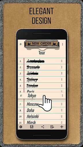 The application is convenient to use for compiling any lists. It can be either a list of tour cities or a shopping list in a store.