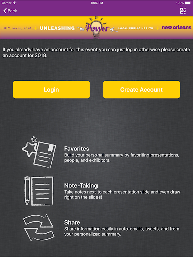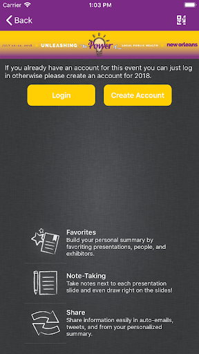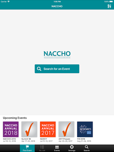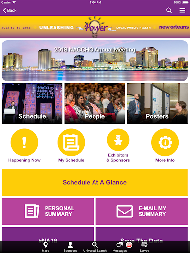 The NACCHO Conference Apps mobile application allows you to access the various annual conferences for the National Association of County and City Health Officials. Within the underlying event apps, users can access presentations, exhibitors, posters, and connect with other attendees. Users can also take notes adjacent available presentation slides and draw directly on slides inside the event apps.