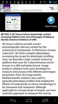 The SLAS2013 mobile application allows you to search through the posters from the 2013 Conference and access all the available posters and presenters.