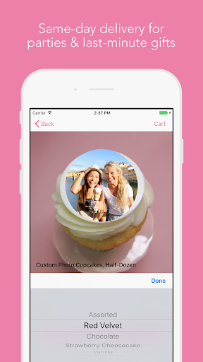 Use your favorite photos from your phone to design your own personalized custom cupcakes in seconds. Then, order directly from the app and get them delivered the same day, or pick them up in-store within minutes.