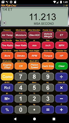 The Hot Rod Calc Elapsed Time (ET) Prediction calculator for your Android Smartphone with built-in motor building and performance solutions will give you the competitive edge at the track or in the garage. No need to remember complex formulas or look them up in tables or charts.
