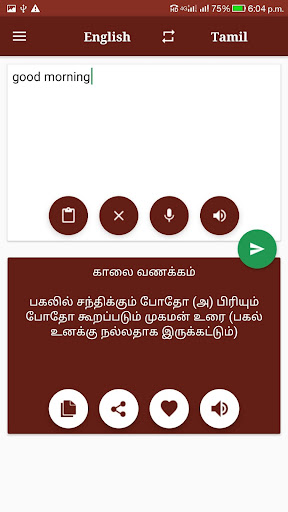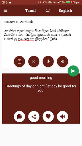 * App works in both mode, Tamil to English Translator or English to Tamil Translator.