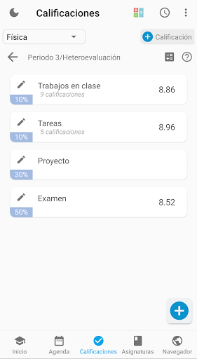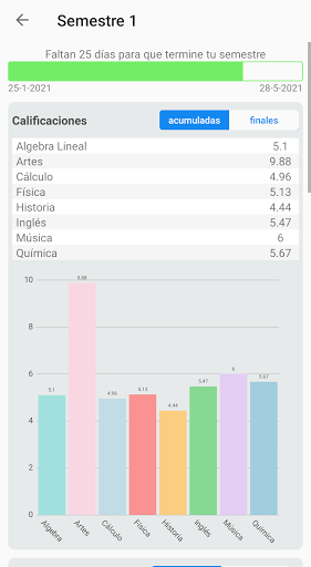 - 무기를 얻으십시오. 기간, 카테고리 및 하위 카테고리로 나누어야하는 등급 체계 학년을 추적하려면 - 각 학교주기 (그리고 일반적으로 과정)의 학년, 지원, 의제 및 일정을 얻는 요약 - 응용 프로그램을 떠나지 않고 학교의 웹 사이트에 액세스하십시오. More : 일정을 추가하고, 교사의 유용한 정보를 교사, 각 바이 스터, 학기, 학기 등의 요약 등을 저장합니다. 의제 공휴일, 평균 계산기 및 지원, 최종 및 평균 등급, UAEH 호환성, 어두운 모드의 자동 계산!