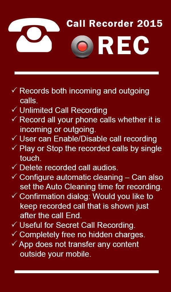✔ Record all your phone calls whether it is incoming or outgoing.