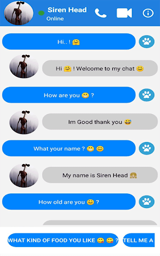 scary siren head Call video Prank app to accompany your days in leisure time.Siren head fake call and chat simulation game is a simulation game in wish you receive fake incoming calls and fake incoming video calls from Siren head, it also simulate having chat with him, its an easy app to use in order to entertain yourself and prank your friends and family and see their frightening and hilarious reactions, This is not a real calling and only a joke!