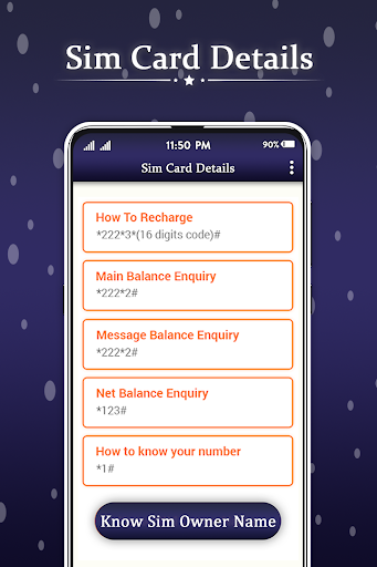 Get all sim information. Check balance code, recharge code.