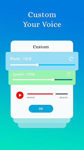 You can use the voice changing application for a variety of purposes such as entertaining and teasing your friends, changing the sound of the song to make it sound funnier, voice changer girl to boy, voice changer boy to girl, voice changer man to woman, voice changer celebrities, recording and adjusting the pitch...