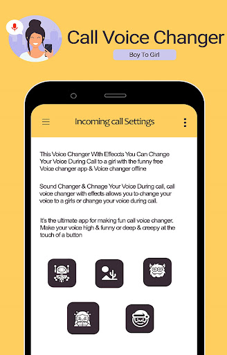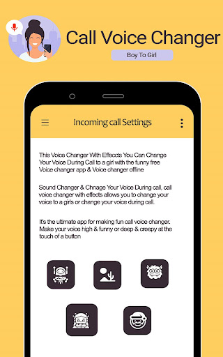 Call Voice Changer and change your voice during call, call voice changer with effects allows you to change your voice to a girl or change your voice during call, this Call Voice Changer app with funny effects.