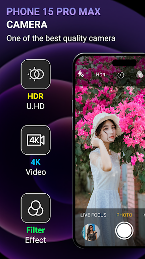 You can "capture picture"- "perfect moments" with the "Camera for iphone 15 Pro Max OS 17". This professional photo app offers a wonderful user experience and a wide range of unmatched capabilities, enabling you to quickly take excellent pictures. The "Camera for Phone 14 Pro Max" app has a variety of "lovely camera effects" and filters, such as Auto facial attractiveness, professional camera mode, scene mode,HDR and exposure in "iCamera" for iphone 15 pro max.