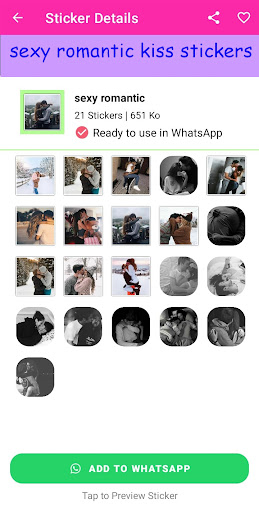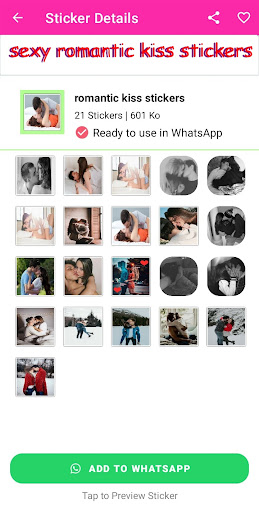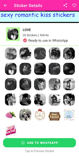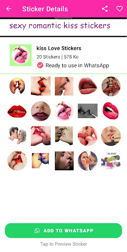 Sexy Romantic Stickers KISS LOVE Animated Sexy Kiss WA-Sticker Love Heart Animated Stickers for WhatsApp is full of fun and emotional emojis to express feelings using animated love stickers and stickers, send stickers to your loved ones for a fun chatting experience and happy.