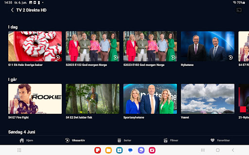 • Stream your TV channels live, or watch shows in the weekly archive up to seven days after the broadcast