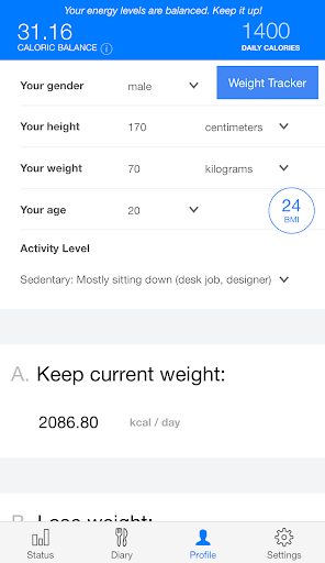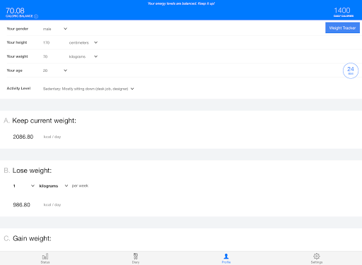 6 - Check your Profile to determine your ideal calorie intake.