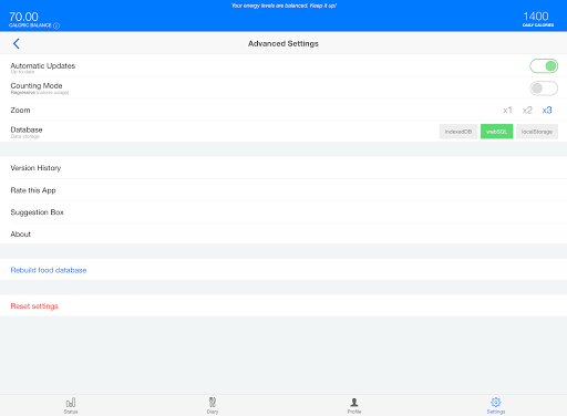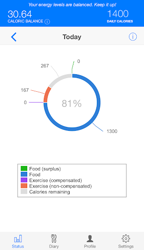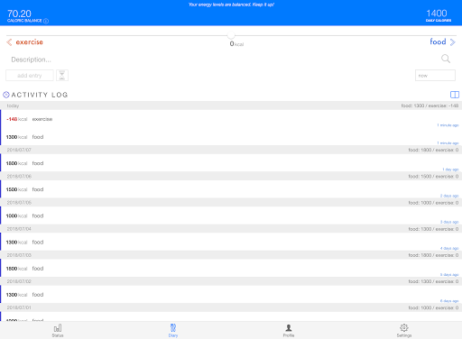 2 - The idea is simple. Define a goal (daily calories) and keep yourself Balanced in the context of this goal. The app will indicate when you’ve eaten too much (surplus), or too little (deficit)