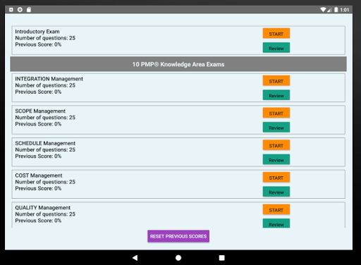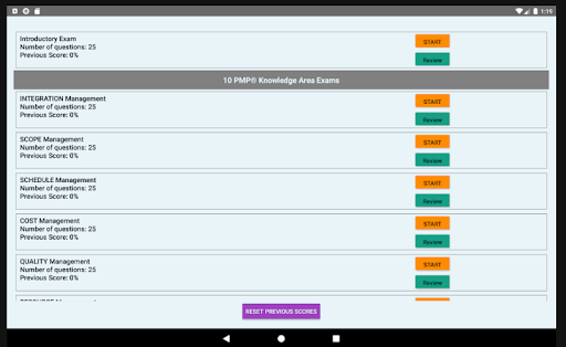 10 Knowledge Area Based Exams – 25 timed questions each (to cover 10 PMP® Knowledge Areas and 49 processes)