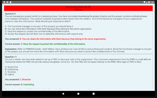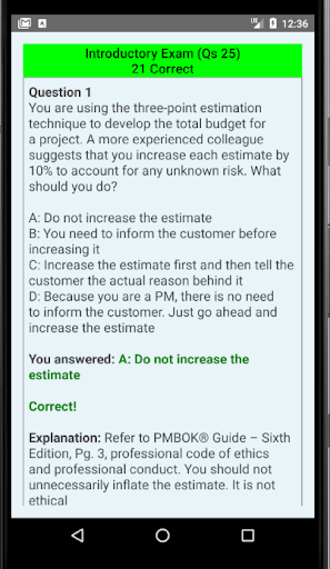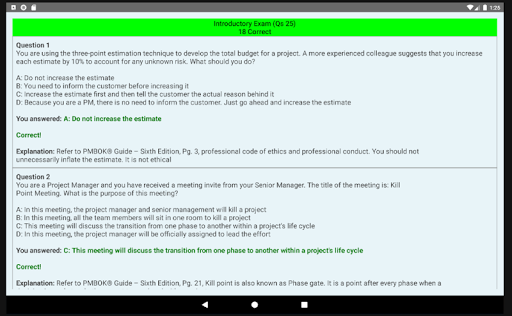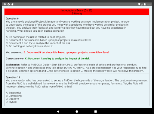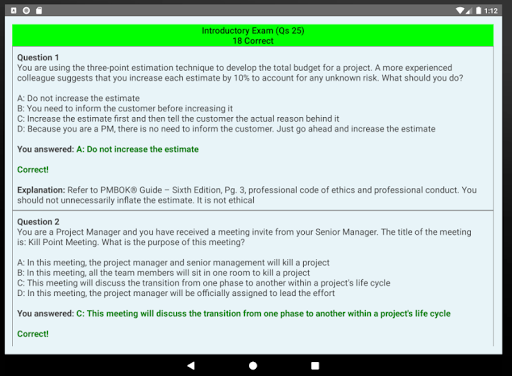 6. Each simulated exam should follow a thorough review and understanding of your weak areas by looking at explanation for incorrectly answered questions with reference to PMBOK® sixth edition
