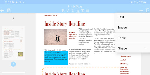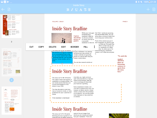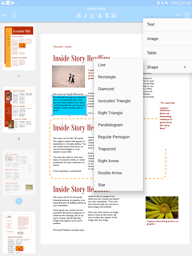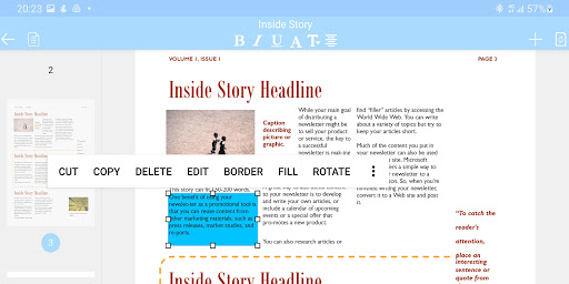 can easily format these objects, change text font, color, border, fill and rotation, change picture, table, shape, border, fill and rotation. You can easily cut/copy/paste object, insert and delete page, set page background, and so on. Bring to front and send to back object, so that you can rearrange these elements. All of these will be very convenient for your editing.