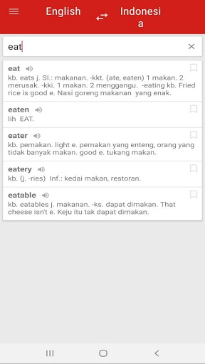 Master Kamus Inggris Indonesia merupakan aplikasi penyedia berbagai kata dan kalimat atau istilah dalam bahasa Inggris - Indonesia maupun sebaliknya Indonesia - Inggris (bilingual). Aplikasi Master Kamus Inggris Indonesia dapat menerjemahkan kata maupun kalimat dalam keadaan offline. Pada aplikasi Master Kamus Inggris Indonesia ini, kamu dapat menemukan berbagai macam kata ataupun kalimat seperti kata benda, kata sifat, verb, irregular verb, dll.
