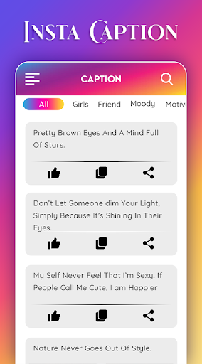 Choose from about 10,000 good quality captions, copy it in just one tap, and post your beautiful photo on Instagram with a great caption.